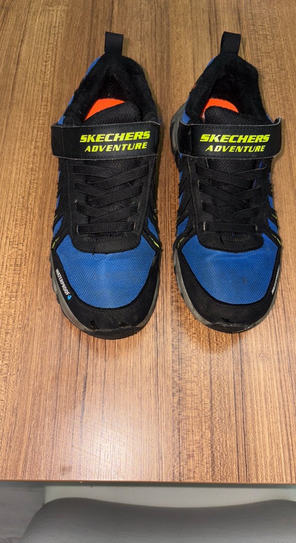 Skechers Adventure marka, koyu mavi baskılı, kauçuk tabanlı ve cırt cırtlı erkek çocuk spor ayakkabısı,kış sezonu için uygundur kalın tabanı ayağın üşütmez 1 kış giyebildik