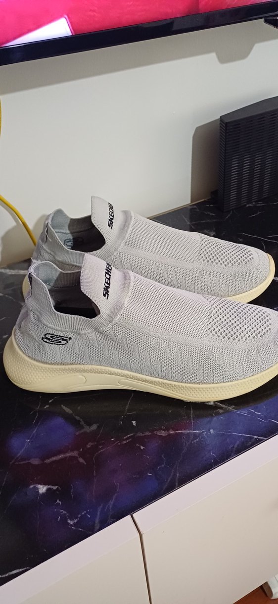 Skechers erkek spor ayakkabılar, beyaz ve gri file üst yüzey ve rahat kauçuk taban ile zahmetsiz şıklık sunar. 44 numara yıkanmış temiz defosu yok