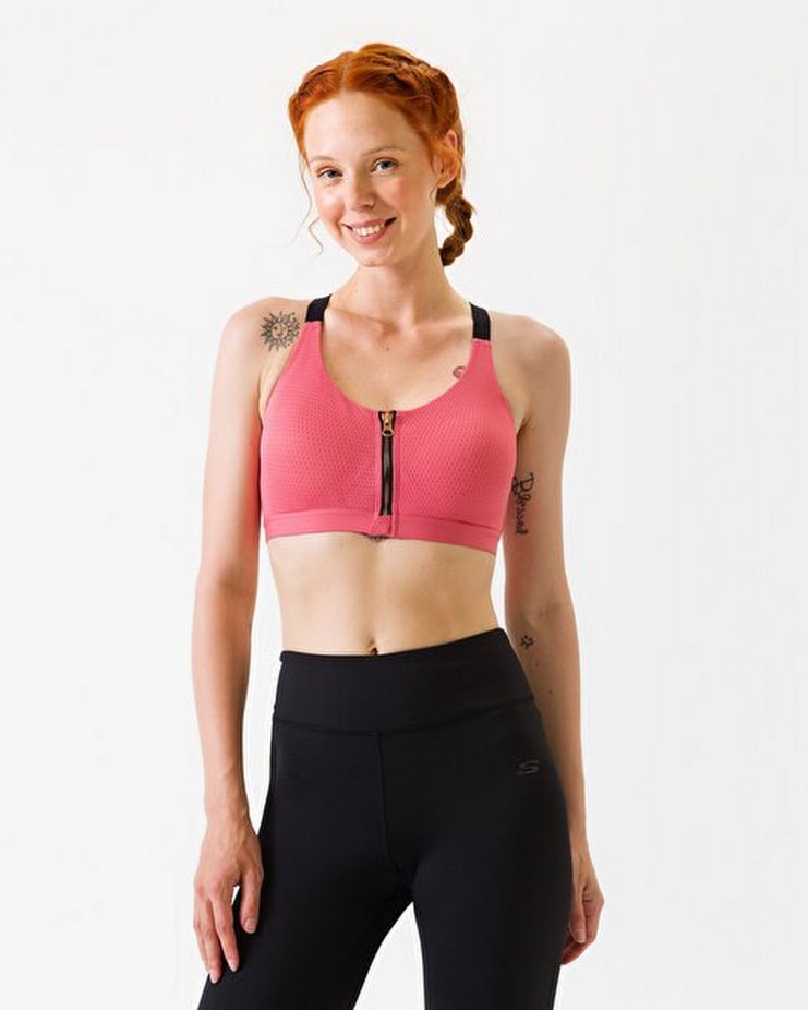 Skechers Fermuarlı Pembe Straplez Spor Üst Bralet