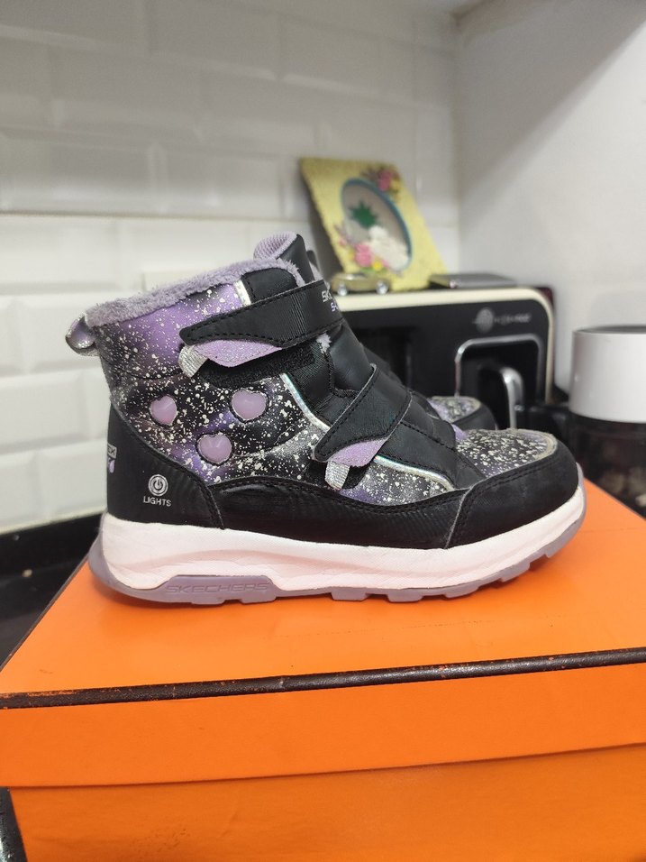 skechers orjinal ışıklı kız çocuk bot sıfır gibi hiç bir sorunu yok güncel fiyatı 6 bin ..... Mor baskılı, cırt cırtlı kız çocuk botu, kauçuk tabanlı, sokak modasına uygun şık bir modeldir.