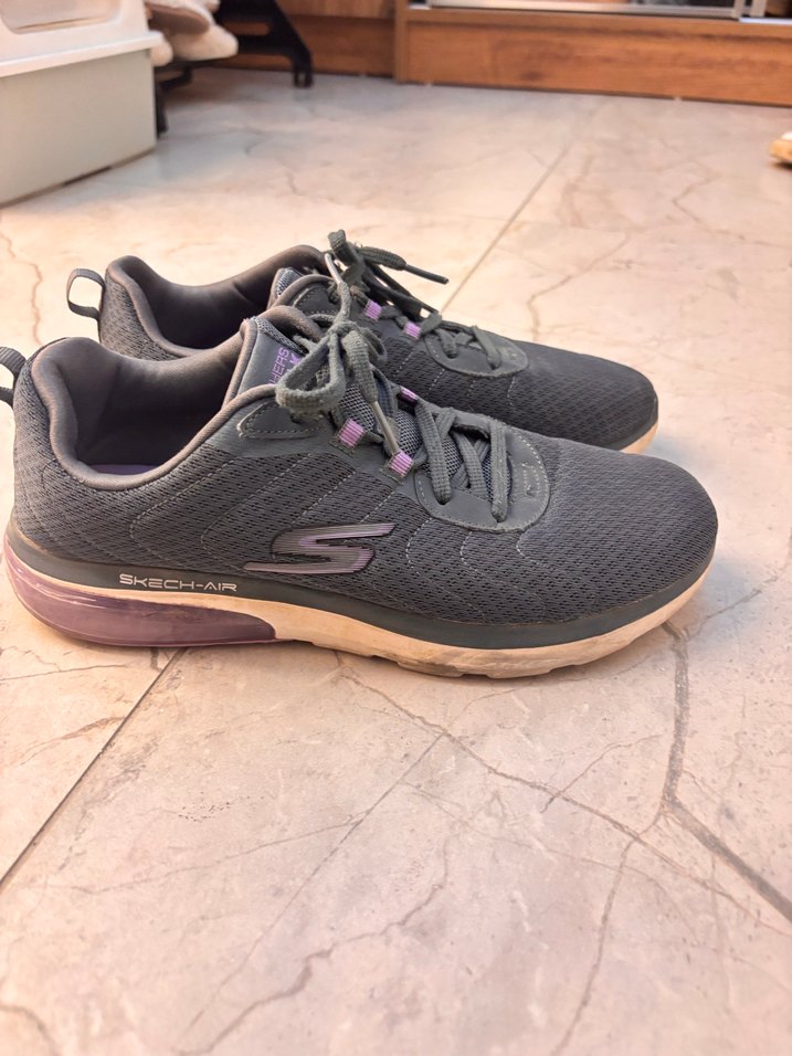 Gri ve mor detaylı, bağcıklı Skechers spor ayakkabı