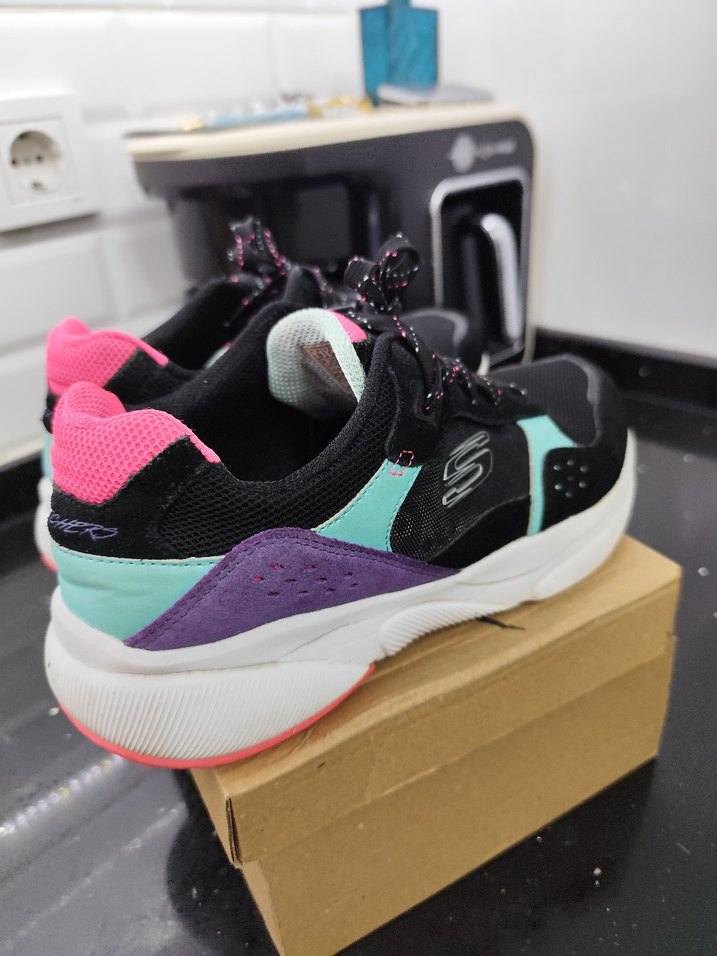 skechers orjinal kadın spor ayakkabı hiç bir sıkıntısı yok.....Renkli tasarıma sahip, blok topuklu ve cırt cırtlı kadın spor ayakkabısı. Kauçuk tabanlı, sokak stili ve athleisure rahatlığını bir araya getirir.