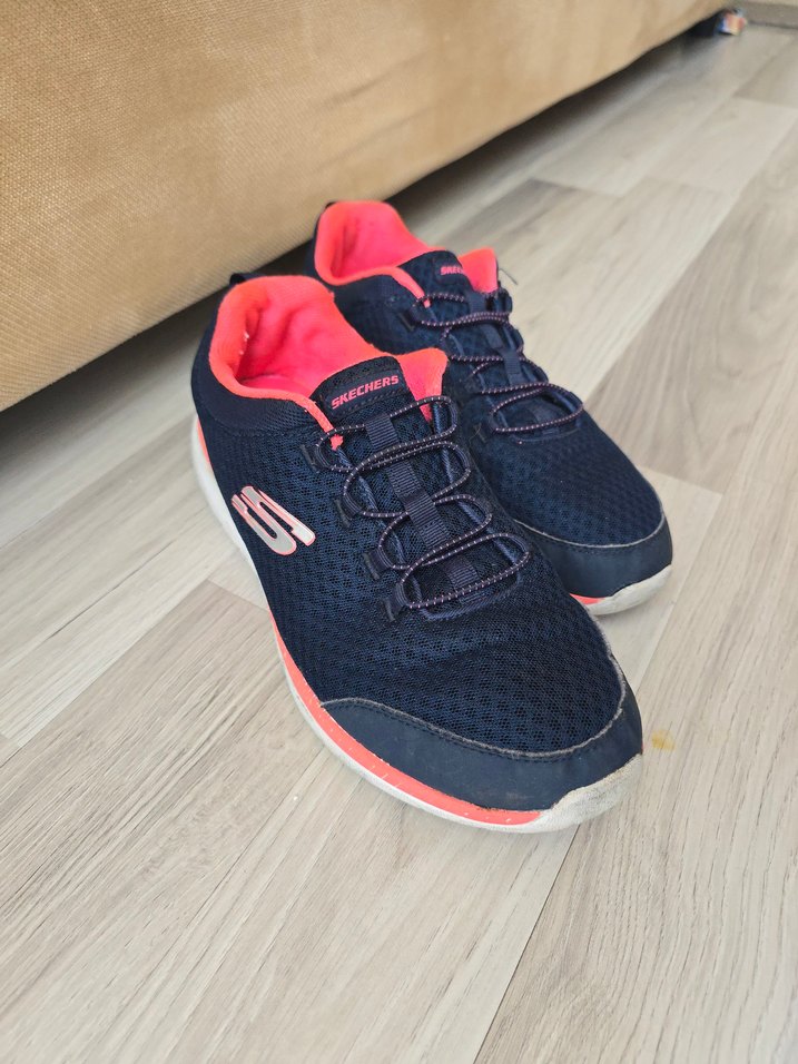 Skechers kadın spor ayakkabısı, pembe detaylı renkli tasarıma ve kauçuk tabana sahiptir. trend şıklık sunar.