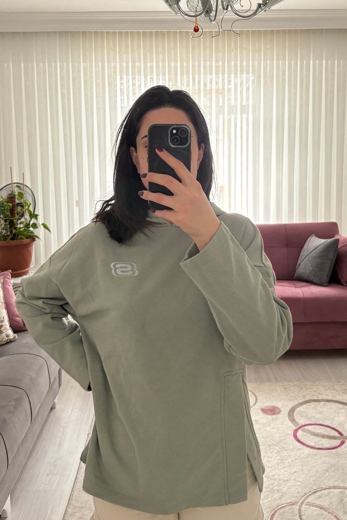 Su yeşili kadın sweatshirt, uzun kollu ve kapüşonlu.Rahat kesimi ve normal boyu ile yumuşak ve sıcak kumaştan üretilmiştir. Günlük kullanıma uygundur. Hiç giyilmedi.