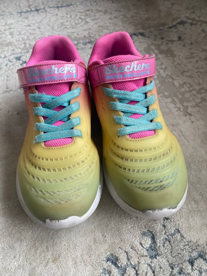 Skechers kız çocuk sneaker, pastel tie-dye desenli, cırt cırtlı ve su itici özellikli kauçuk malzemeden üretilmiştir. Çok iyi durumda az kullanıldı içi dışı yıkanıp kaldırıldı tertemiz alıcısına hayırlı olsun