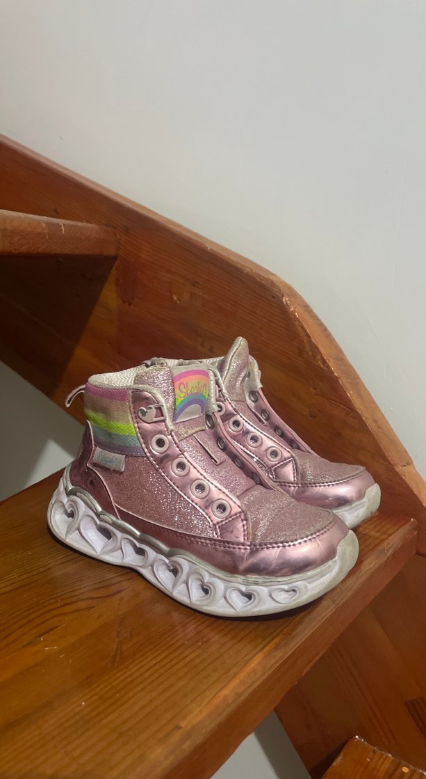 Işıklı ayakkabı. Pili değiştirince çalışır. Bağcıkları yok.