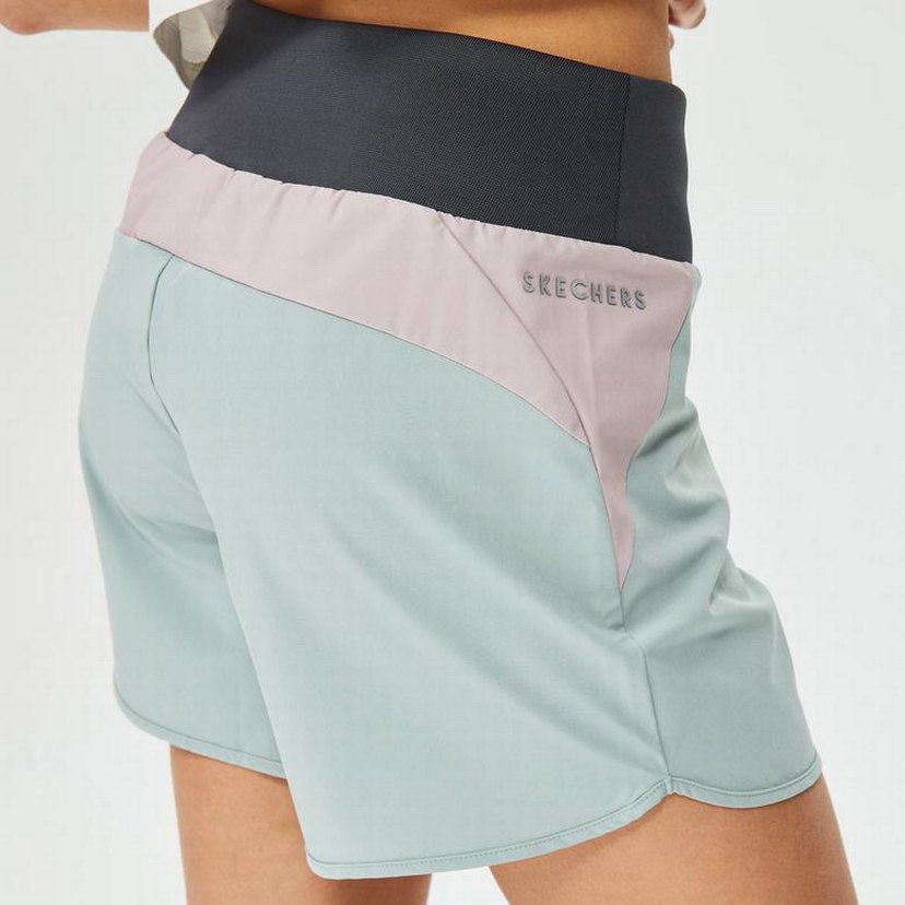 Skechers marka, kemerli beli ve sentetik kumaştan üretilmiş, rahat kesim mavi şort Spor ve sokak tarzına uygun.