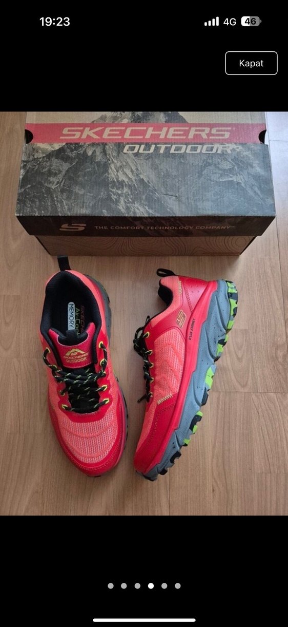 Skechers Outdoor kırmızı bağcıklı erkek spor ayakkabı, renkli baskılı desenlere ve dayanıklı kauçuk tabana sahiptir. Trendy sokak stili için uygundur.