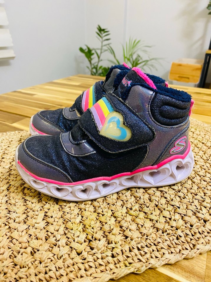 Orijinal ürünün hiçbir sıkıntısı yoktur sadece birinin ışığı çalışmamaktadır Cırt cırtlı, kalp detaylı tabana sahip renkli kız çocuk spor ayakkabısı. Kauçuk malzemeden, rahat ve trend sokak stili görünümünde.