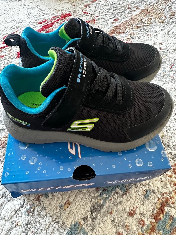 Skechers markalı siyah erkek çocuk spor ayakkabısı. Sol tekin ön kısmında ufacık bi ip bırakması oldu. Harici temiz
