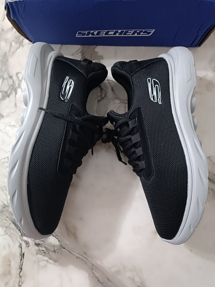 Ürün sıfır ve etiketlidir görüldüğü gibi bütün detaylarıyla paylaşıldı.Skechers siyah ve gri erkek spor ayakkabı, elastik detaylar ve kauçuk taban ile sportif sokak tarzına uygun. #skechers