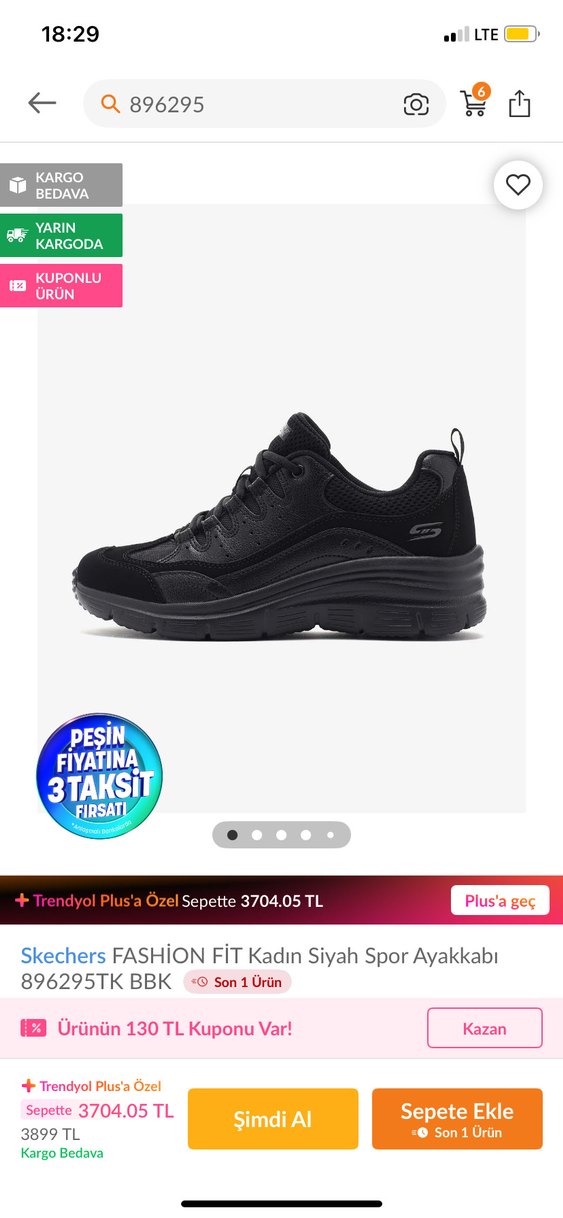 Siyah Skechers kadın spor ayakkabı 5-6 saat giydim küçük almışım. Boyner’den alındı kutusu tok kargoda deforme olmuştu o sebeple attım. 896295 modeli