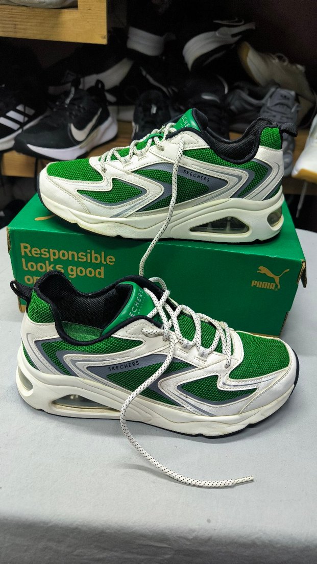 Yeşil renkli bağcıklı kadın spor ayakkabısı, lastik malzemeden üretilmiş ve stiletto topuk stilinde. Trendy casual ve street wear kombinlere uygun, desensiz tasarıma sahip.