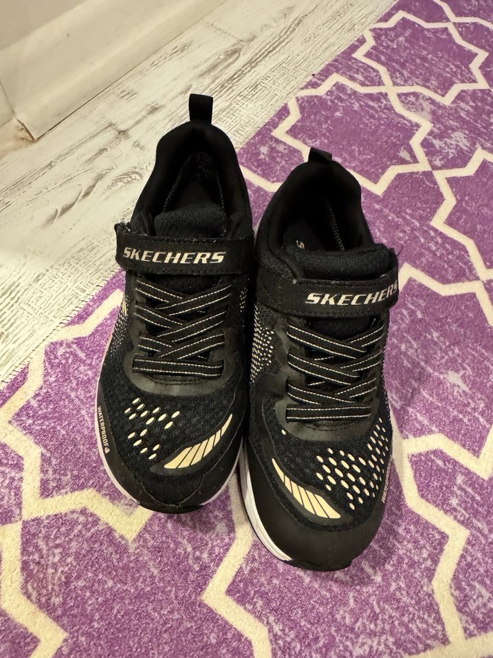 Skechers markalı, yılan desenli siyah erkek çocuk spor ayakkabısı. Cırt cırtlı ve kauçuk tabanlı, rock punk tarzını yansıtan sokak giyimi ayakkabısı.