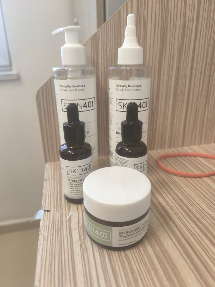 SKIN 401 erkek cilt bakım seti, temizleyici jel, serum ve nemlendirici içerir, günlük kullanım için uygundur.