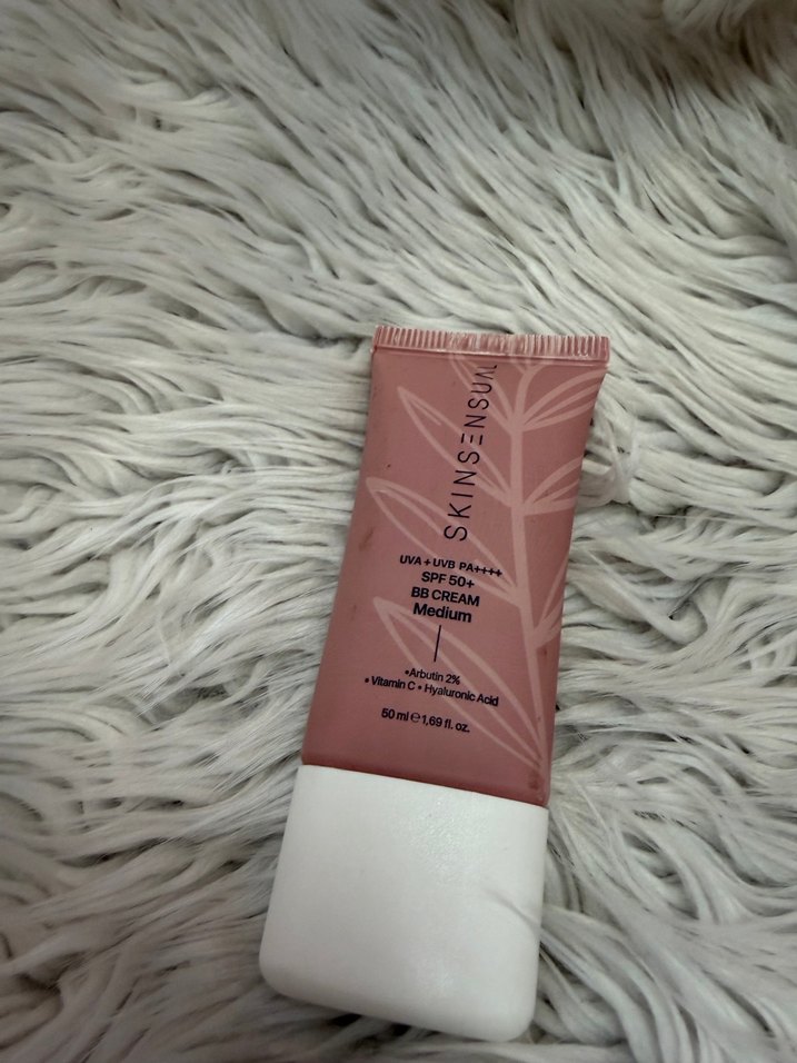 Bej renkli pastel BB krem, SPF 50+ koruma sağlar ve niasinamid, C vitamini ile hyaluronik asit içerir. Medıum renk