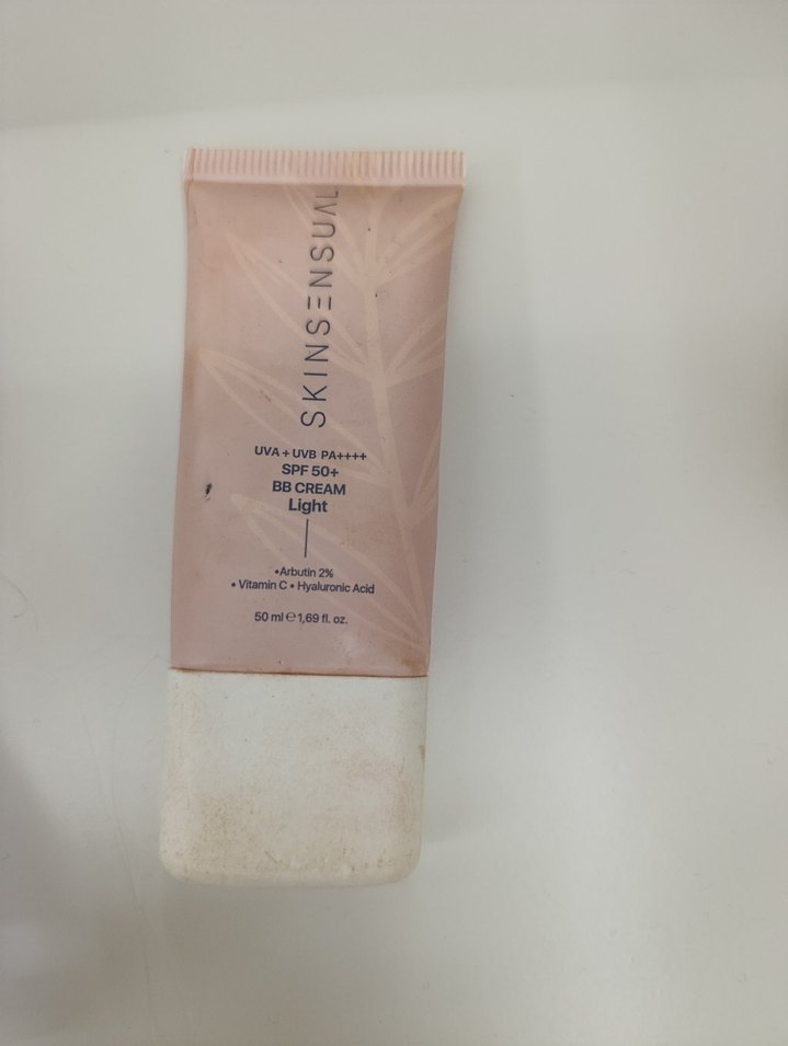 Hafif bej tonunda, SPF 50+ korumalı BB krem. Arbutin, C vitamini ve Hyaluronik asit içerir. 50 ml. skin sensual yarısı var
