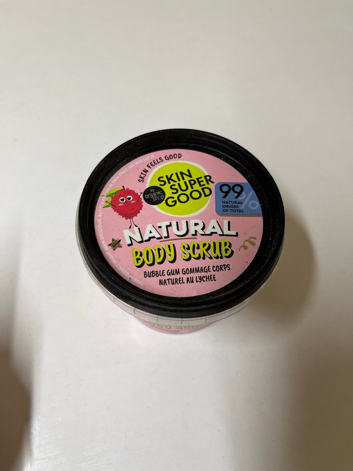 Skin Super Good doğal vücut peelingi, %99 doğal içerikle cildi nazikçe soyup pürüzsüzleştirir. Litchi kokusu içerir.