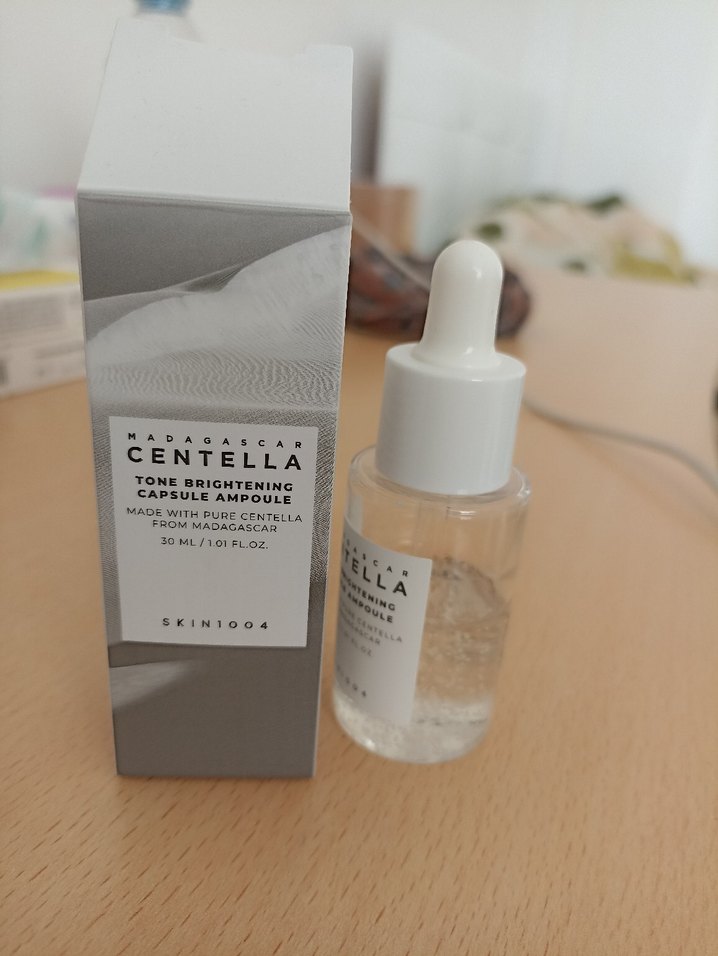 SKIN1004 Madagascar Centella Ton Aydınlatıcı Kapsül Serum, saf Madagaskar centella özü içerir ve cilt tonunu eşitler. 30 ml damlalıklı şişede sunulur. Yarısı kullanıldı. Gratisten alındı. Ömrü 12 ay. Skt 2027