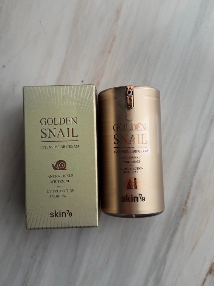 Skin79 Golden Snail Yoğun BB Krem, kırışıklık karşıtı, beyazlatıcı ve SPF 50+ PA+++ UV koruması sağlar. Parlak bitişli. Yanlızca 1 defa denendi.