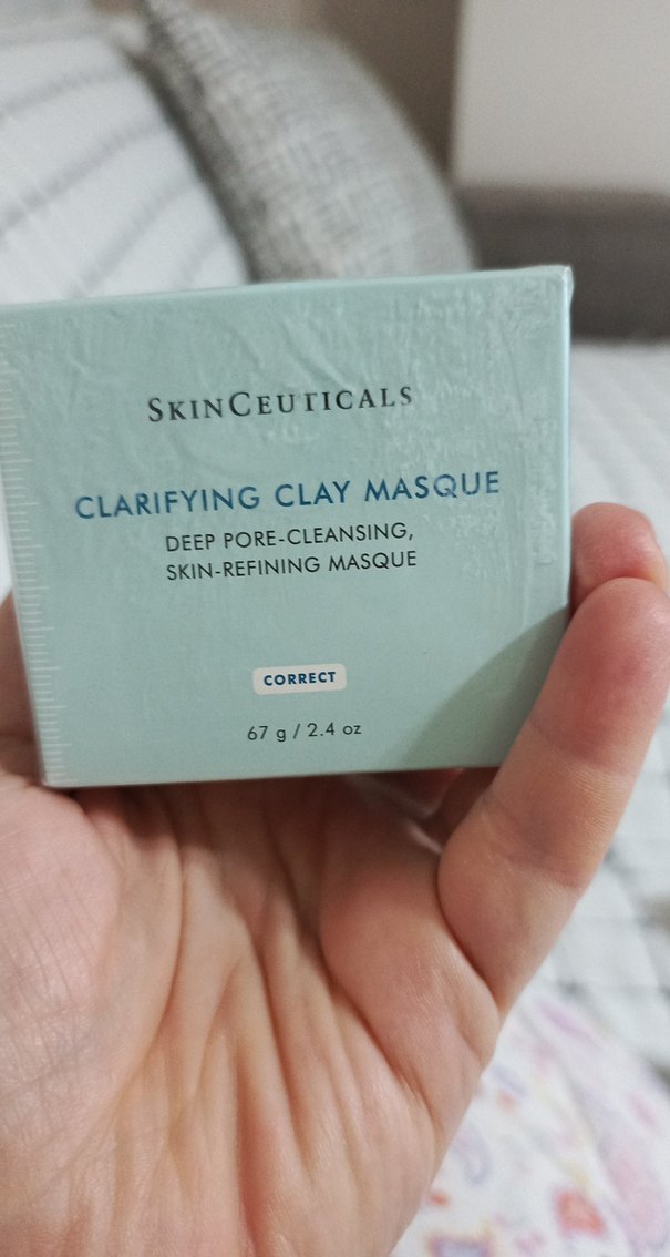 SkinCeuticals Clarifying Clay Masque, derinlemesine gözenek temizliği ve cilt yenileme sağlayan 67g'lık toz maske, pastel turkuaz kutuda.