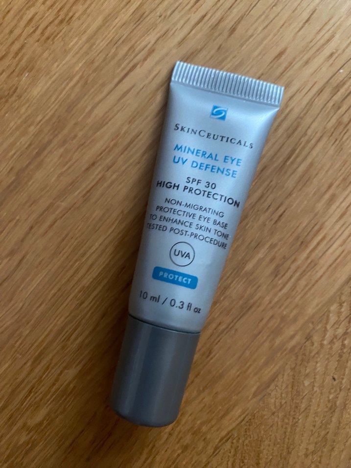 Skinceuticals Mineral Eye UV Defense SPF30, göz çevresini koruyan ve cilt tonunu iyileştiren, eşitleyen formüle sahip 10 ml'lik kremdir. Göz altı morluklarını da hafif renkli yapısı sayesinde az görünür yapıyor, deniz kenarında da rahatlıkla kullanılabilir. Üründen 1-2 kere kullanıldı.