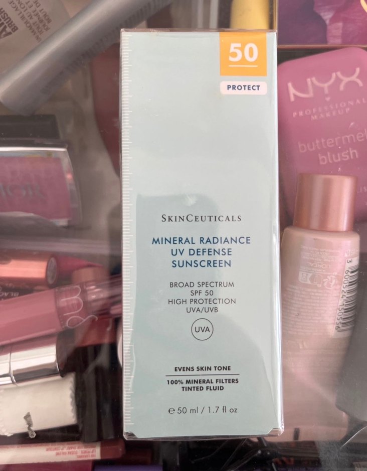 SkinCeuticals Mineral Radiance UV Defense SPF 50 geniş spektrumlu, tonlu ve mineral filtreli güneş koruyucu sıvı. Cilt tonunu eşitler, yüksek UVA/UVB koruması sağlar. 50 ml.