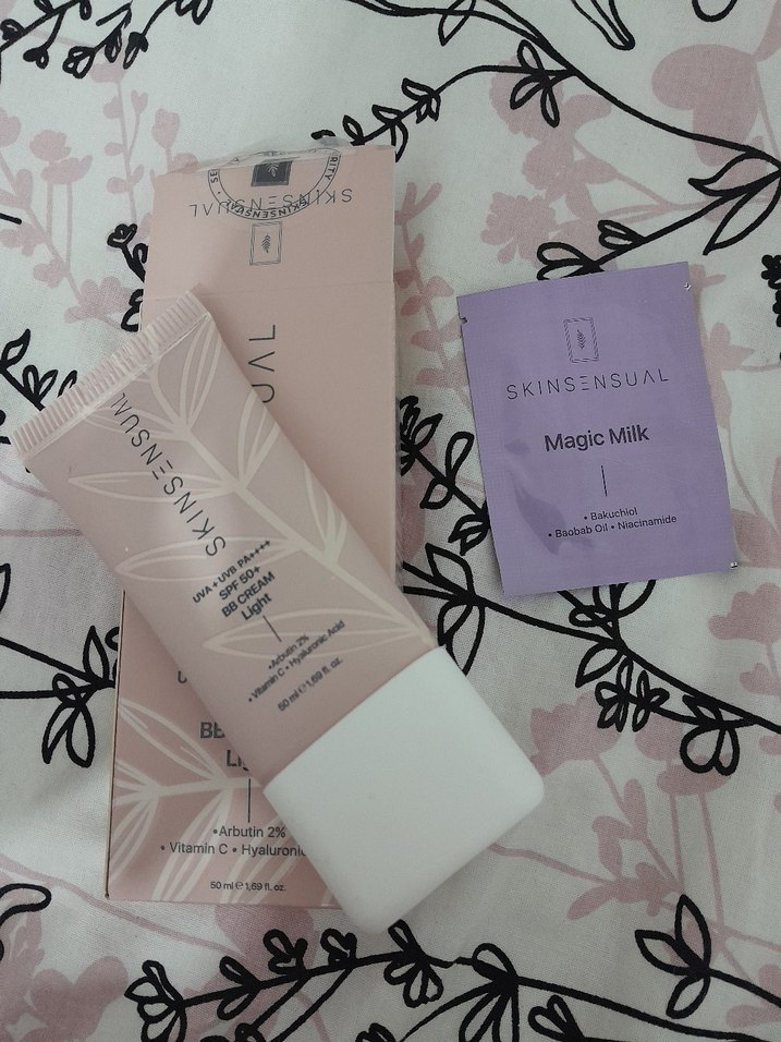 SKINSENSUAL Magic Milk BB Krem, pastel pembe renkte, arbutin, C vitamini ve hyalüronik asit içerir. Hafif kapatıcılık ve parlak bir görünüm sağlar.BİR KEZ KULLANDIM RENGİ BANA KOYU OLDUĞU İÇİN SATIYORUM
