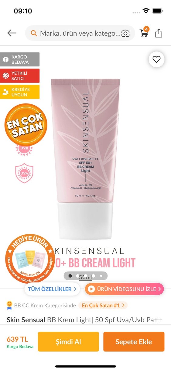 Fazla almışım iade süresi geçti iade edemedim aldığımdan uyguna koyuyorum. 6tane almıştım 3ünü satıyorum hiç açılmadılar tüpleri kapalı kutuların badı bile açılmadı. Skinsensual O+ BB Cream Light, SPF 50+ koruma sağlar. Arbutin, C vitamini ve hyaluronik asit içerir. Pastel pembe renktedir.
