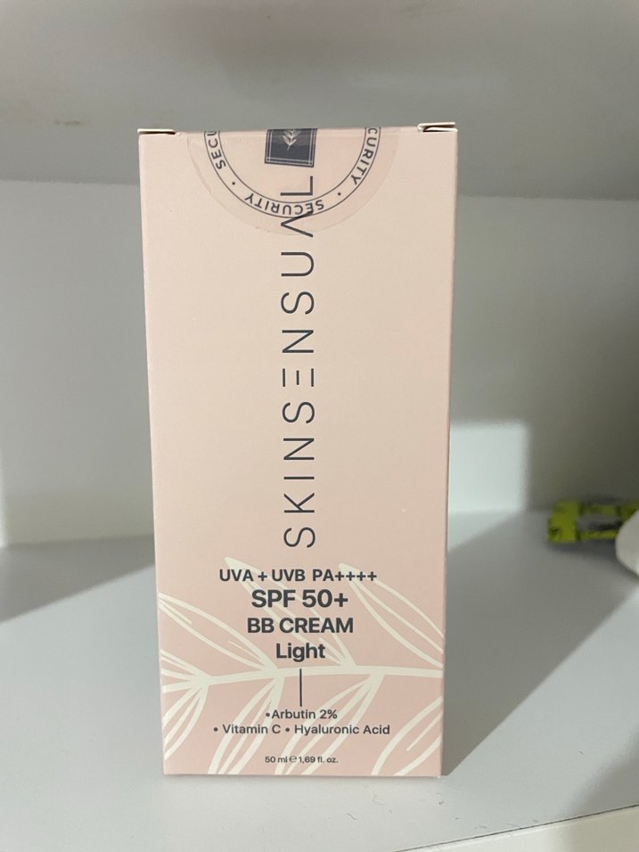 Skinsensu BB krem açık ten rengi, SPF50+ koruma sağlar. %2 arbutin, C vitamini ve hyaluronik asit ile cildi nemlendirir ve aydınlatır.