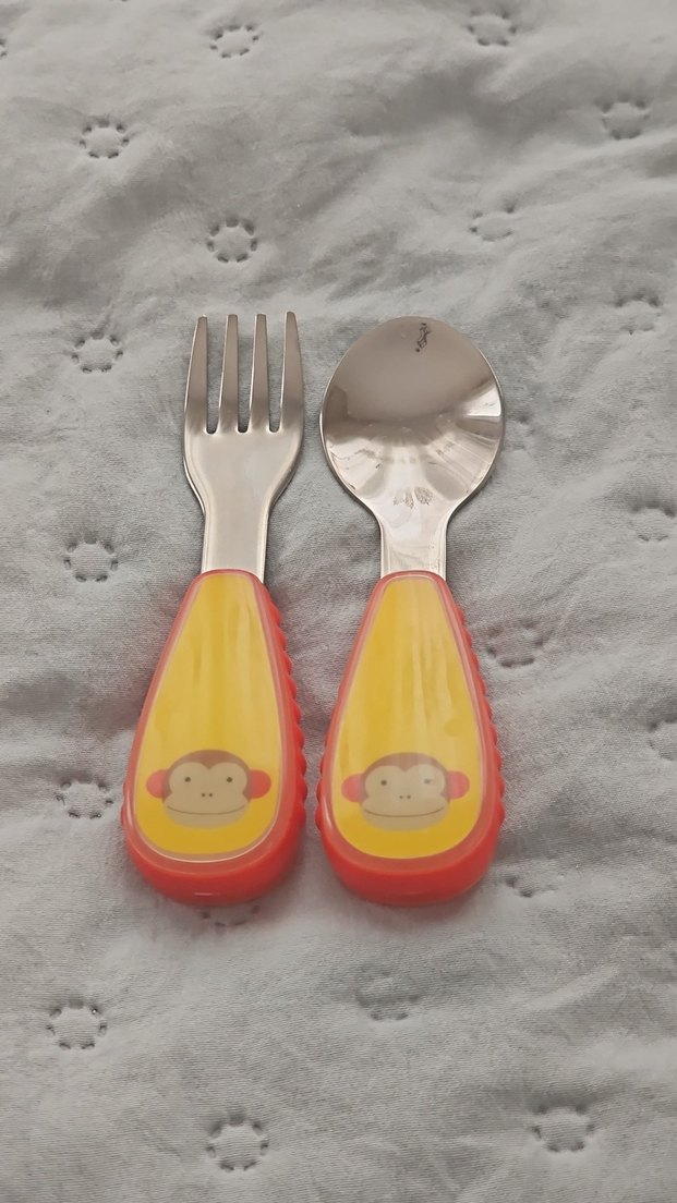Orijinal Skip Hop markasına aittir.Hiç kullanmadı,sıfir ürün.Sadece ambalajini atip kaldirmistim.Kullanilmadigi icin satiyorum.Sorunu yok gorundugu gibi yeni ürün .Renkli, sarı saplı ve maymun desenli çocuk çatalı ve kaşığı seti, küçük eller için uygundur.