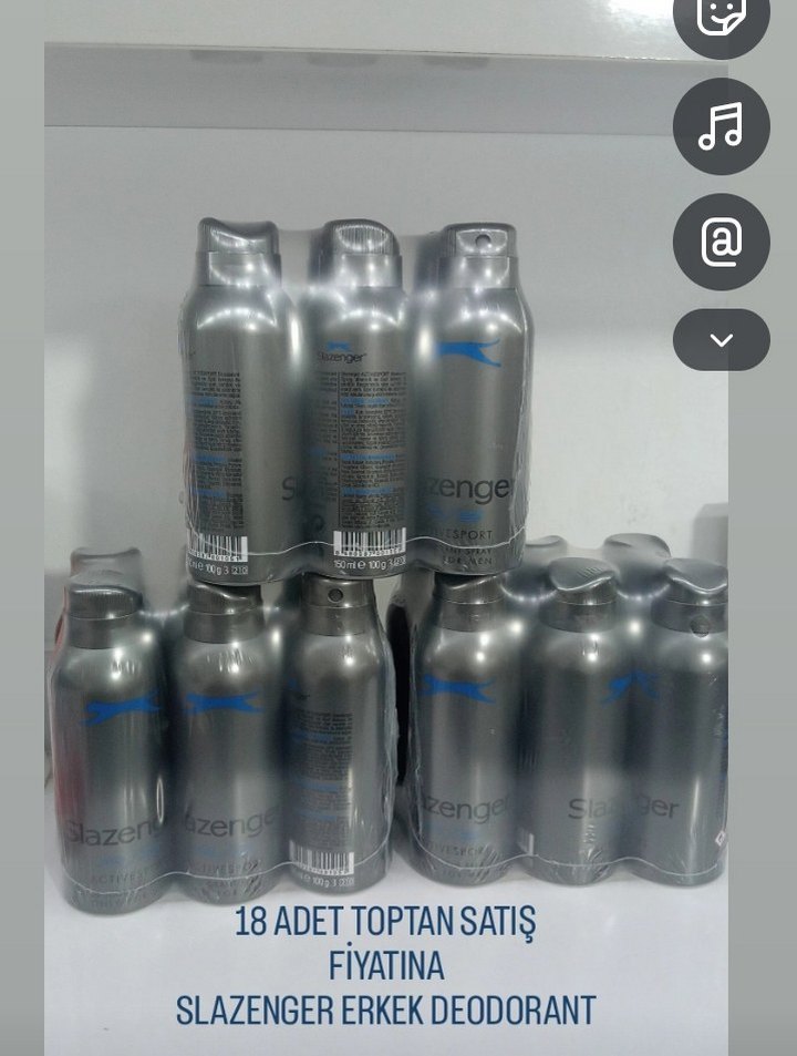 18 adet Slazenger erkek deodorantı, toptan satış fiyatına sunulmaktadır. Her biri şık gümüş şişede.