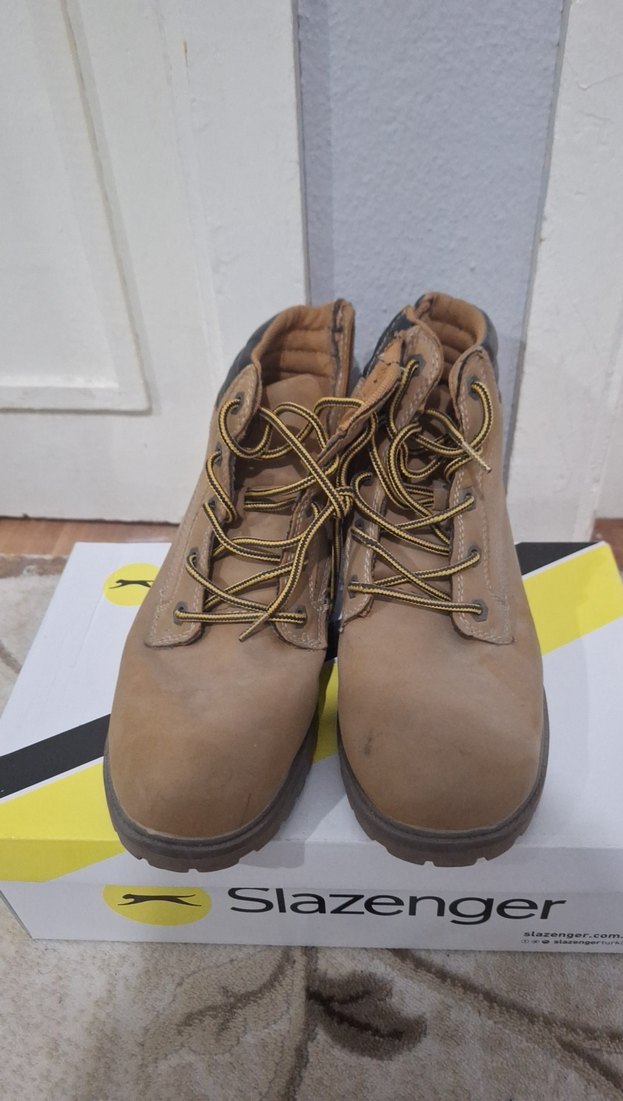 Slazenger kahverengi kauçuk outdoor botlar, bağcıklı tasarımı ve gri detaylarıyla günlük rahat kullanıma uygundur.