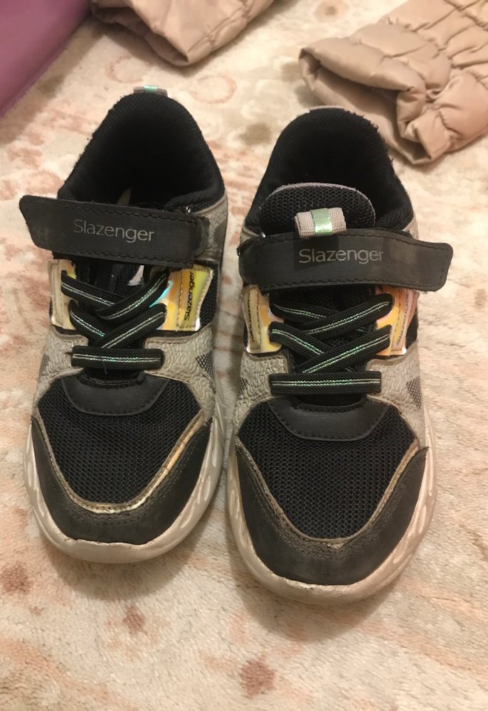 Slazenger markalı gri yılan desenli kızçocuk spor ayakkabısı, cırt cırtlı ve kauçuk tabanlıdır. Sokak stili için uygun. Yanlarında deforme vardır fotolarda mevcuttur