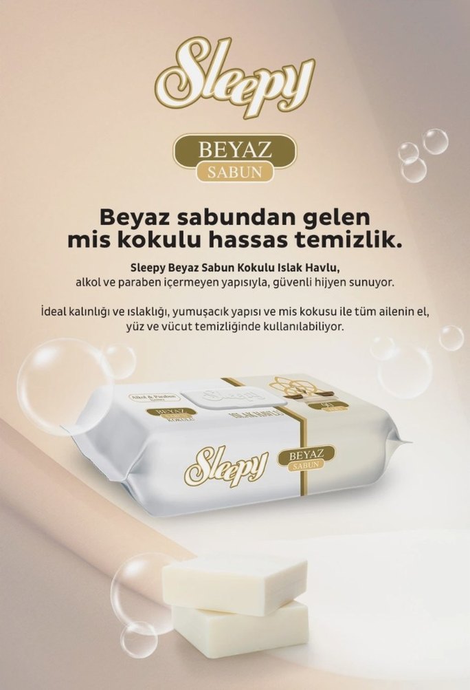 Sleepy Beyaz Sabun Kokulu Islak Havlu, beyaz sabun kokusuyla mis kokulu hassas temizlik sunar. Alkol ve paraben içermez, yüz ve vücut temizliğinde kullanılabilir. Yumuşak yapısı ve ideal kalınlığı ile tüm aile için uygundur. 1 paket fiyatidir 90 adet ıslak havlu.