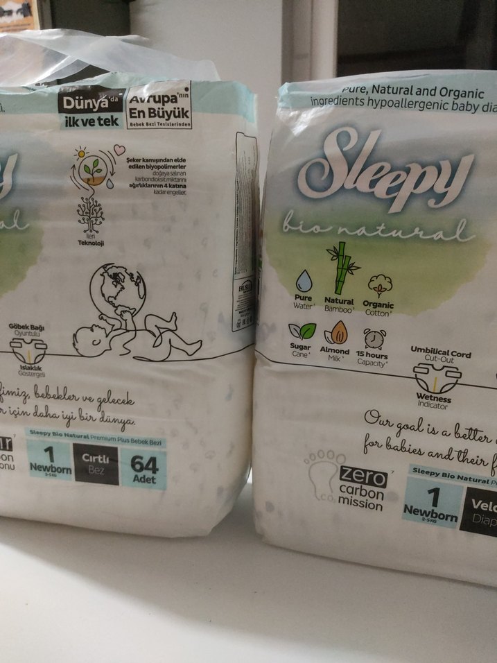 Sleepy Bio Natural yenidoğan bebek bezleri, saf su, doğal bambu ve organik pamukla hipoalerjenik koruma sağlar. 15 saat kuruluk ve sıfır karbon misyonu sunar.