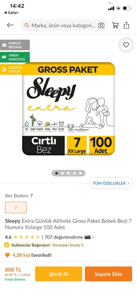 Sleepy Extra Bebek Bezi 7 Numara XXLarge 100 Adet