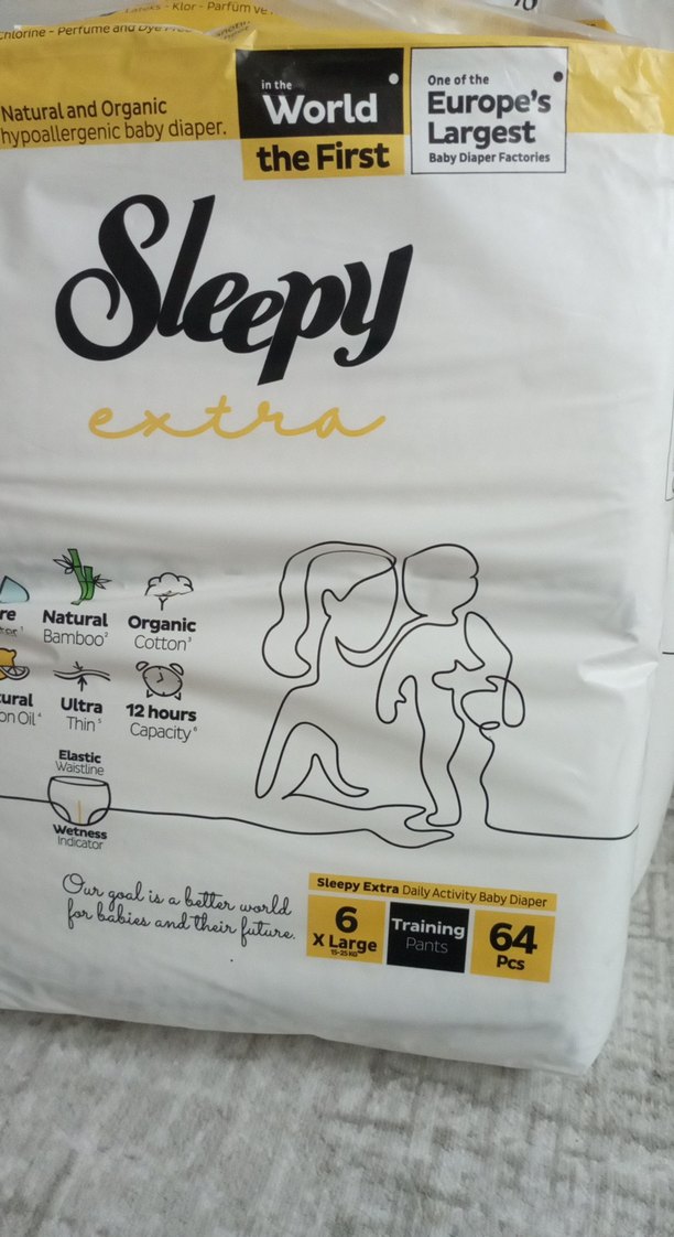 Sleepy Extra eğitim pantolonları doğal bambu ve organik pamuktan üretilmiştir. İnce yapısı, 12 saatlik emicilik ve elastik bel bantı vardır. X Large 64 adet içerir.