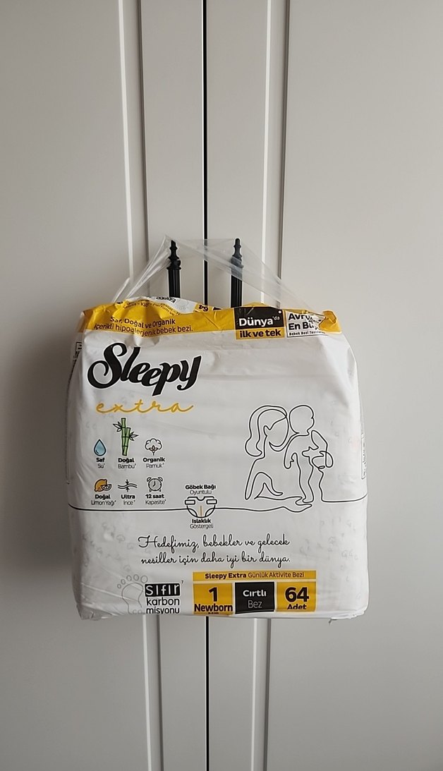 Sleepy Extra yenidoğan bebek bezi, organik malzeme ve ultra yumuşak kumaş ile hassas ciltler için uygundur. 64 adetlik, sıfır karbon misyonlu pakettir. 3 adet mevcuttur. 3 adet fiyatı 300dür.