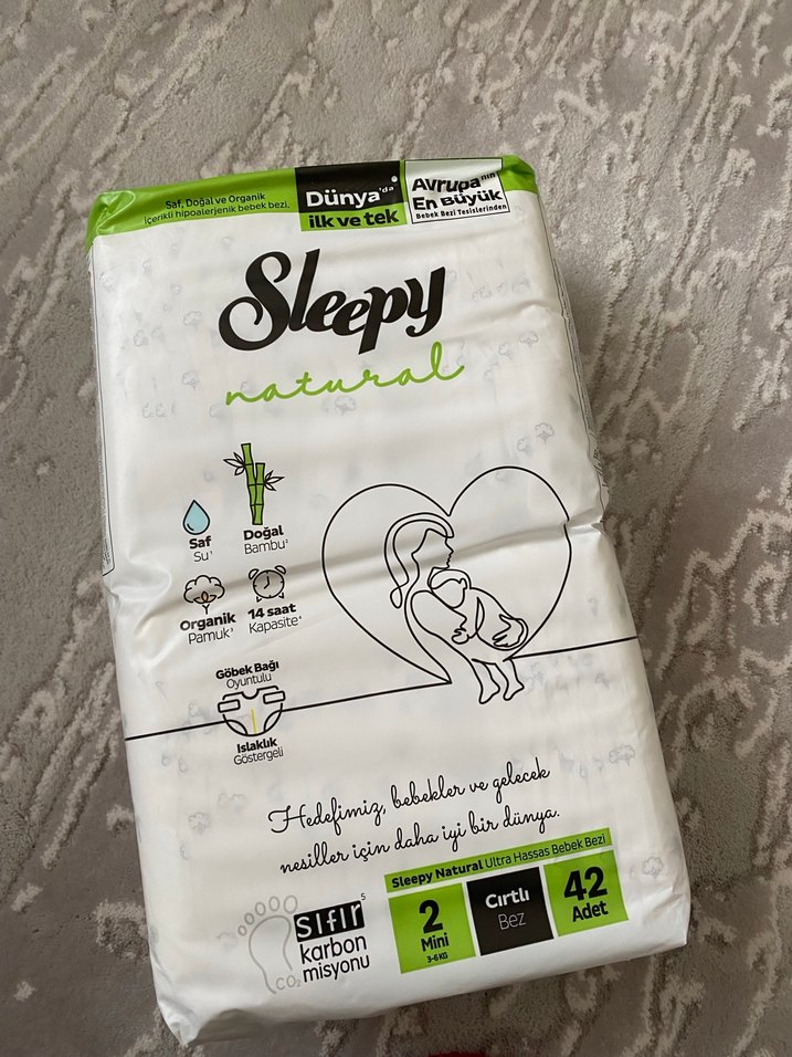 Sleepy Natural bebek bezi, doğal bambu ve organik pamuk kullanılarak üretilmiştir. 14 saatlik kapasite ve yumuşaklık sağlar. Sıfır karbon misyonuna sahiptir.