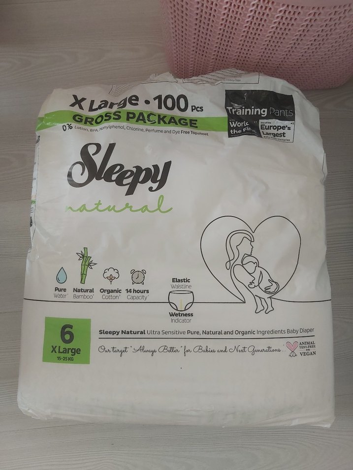 Sleepy Natural XLarge 6 beden kulot bez oğlum bezi biraktigi icin elimde kaldi 100lu paketten cok az sayili kullanildi kalan paket oldugu gibi duruyor.