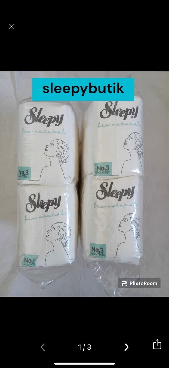 43-46 adet arasi 3 numara Sleepy gece pedi. Ürün orijinaldir. Sleepy fabrikasindan geffaf ambalaj olarak temin edilmektedir. Urünlerde baski eksikligi olabiliyor bu yüzden uygun fiyata veriyorum. #sleepy #ped