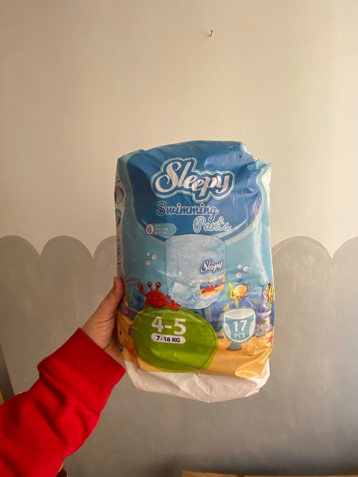 Açılmamış 0 paket + yanında 3 adet açık olanı da göndericem 7-18 KG arası bebekler için Sleepy Smimmina yüzme bezi, 4-5 beden, 17 adet içerir.