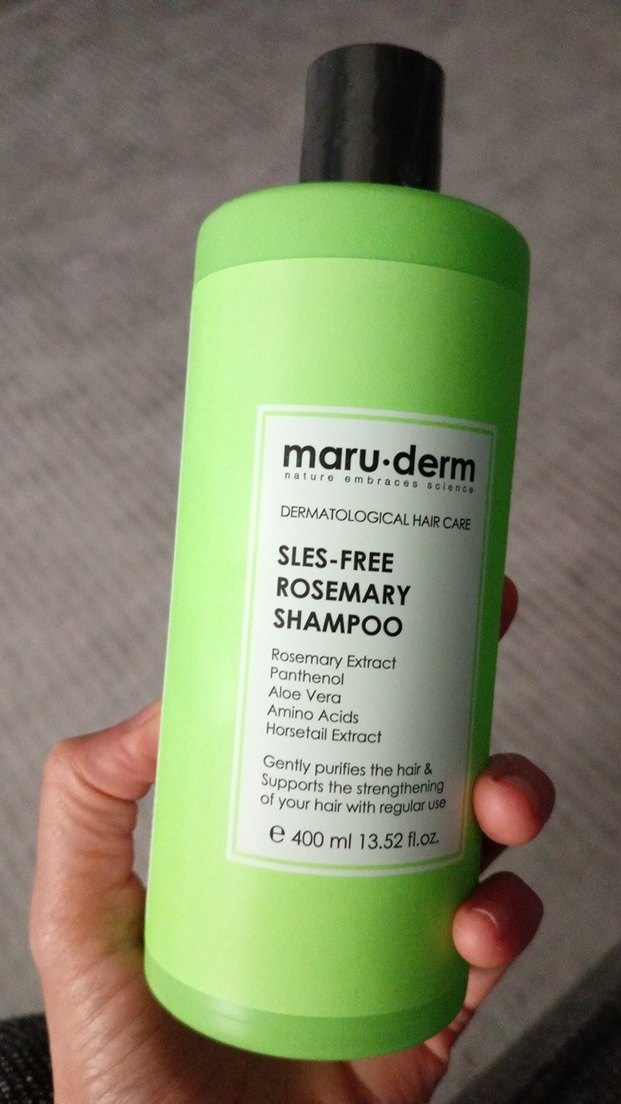 maru.derm markasının SLES içermeyen biberiye özlü şampuanı, panthenol, aloe vera, amino asitler ve at kuyruğu özü içerir. Saçı nazikçe temizler ve düzenli kullanımda güçlenmesini destekler. Ürün hiç kullanılmadı.