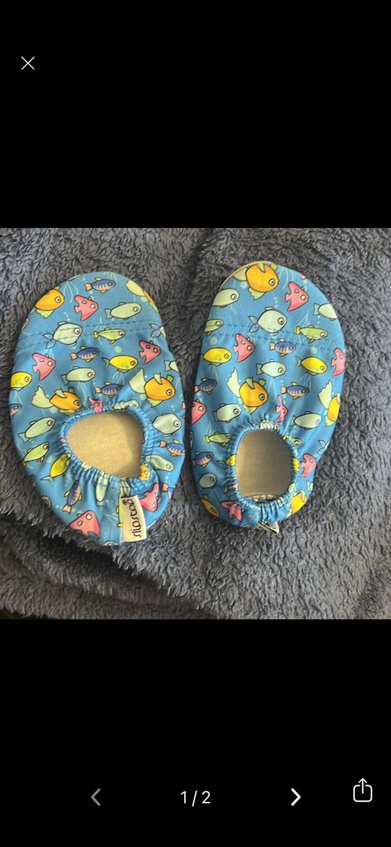 Mavi renkli balık Desenli Slipstop marka deniz ayakkabısı. KAYDIRMAZ, orjinal üründür. 18-20 numara (1yaşında 1-2kez kullanıldı bizimki henüz yürüyemiyordu zaten, yeni gibi)