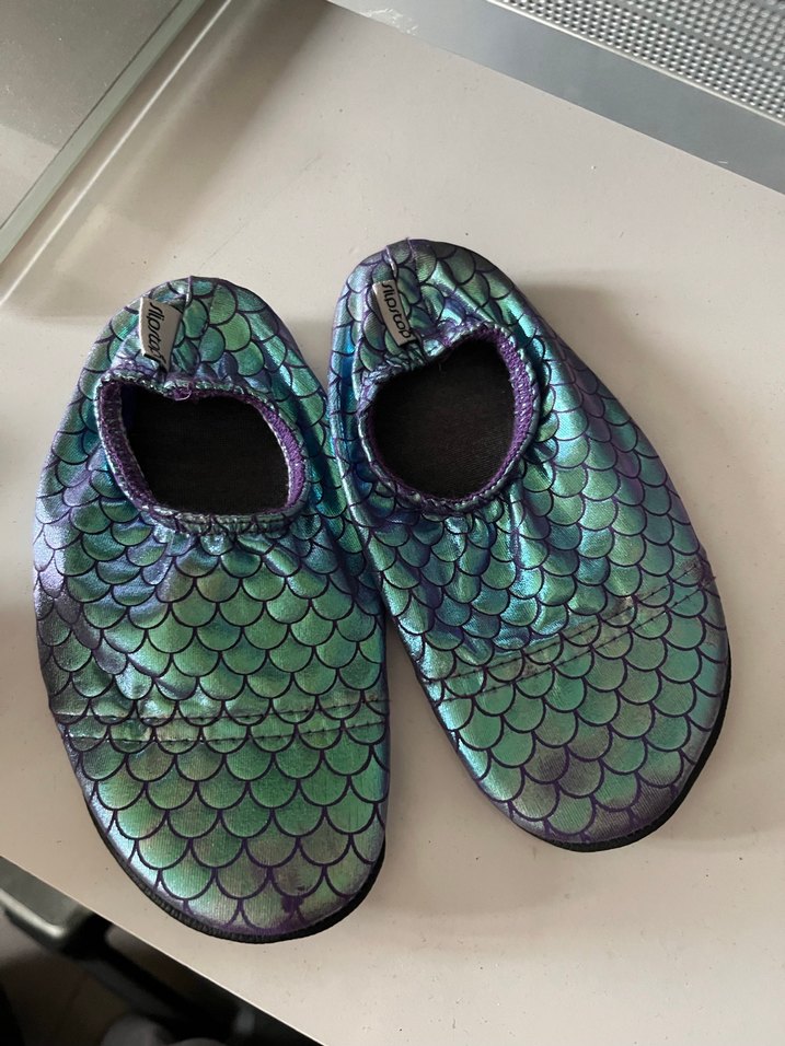 Hiç kullanılmadı. çocuklar için turkuaz renkli, yılan deseni ve cırt cırtlı kauçuk terliklerdir. Bohem ve retro tarzı yansıtır.