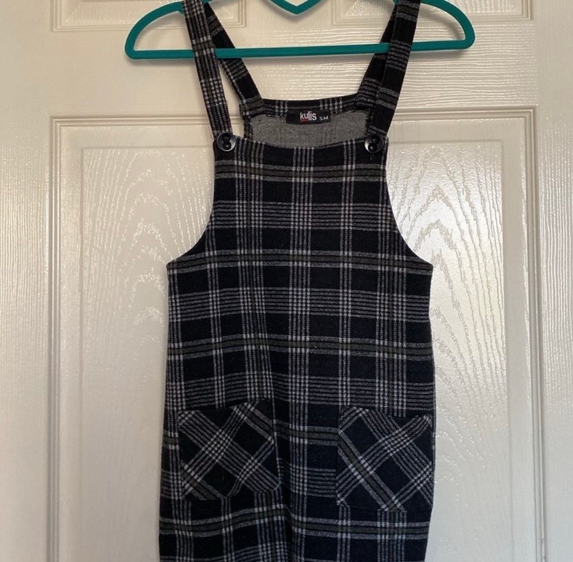 Yün kumaştan yapılmış bol kesim askılı slopet. Düğmeli askıları ve ön cepleri vardır. Üründe hiç bir sıkıntı yoktur.