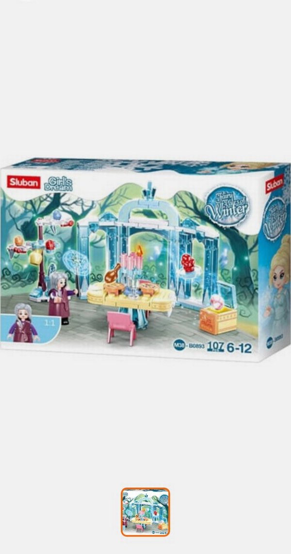 Sluban mavi pastel renkli Lego seti, kış temalı detaylı aksesuarlar ve mini figürler içerir, 6-12 yaş arası çocuklar için uygundur. ❄️Ürün sıfır hiç kullanılmamıştır.