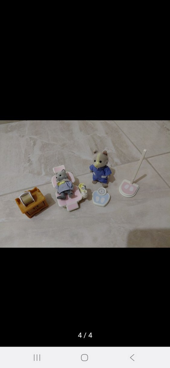 Pastel mavi renkli, iki küçük hayvan figürü ve çeşitli aksesuarlar içeren mini oyuncak seti. Dişçi Yatak, telefon ve küçük oyun eşyaları bulunur.