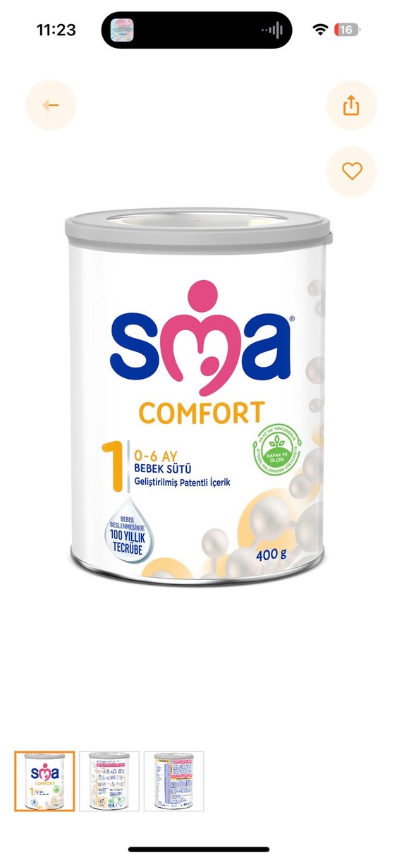 0-6 ay bebekler için SMA Comfort bebek sütü, 400g beyaz kutuda geliştirilmiş patentli içerik sunar. Bebeğim sarılık olduğu zaman almıştık sadece bunu kabul etti paketin yarısından fazlası duruyor şu an sadece anne sütü içtiği için satıyorum